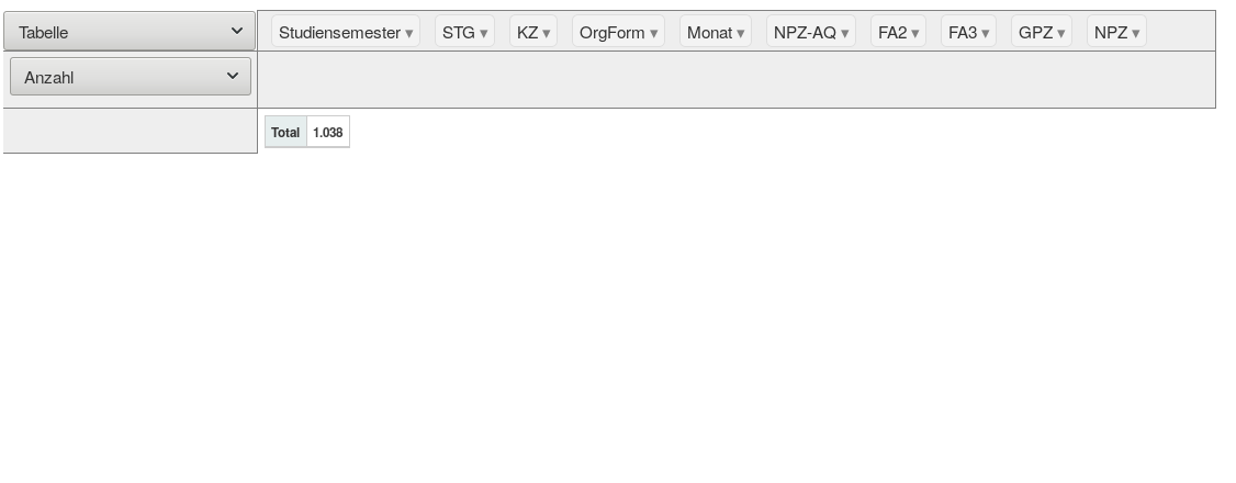 { rows: ["STG", "KZ"], cols: ["Studiensemester", "Monat"], rendererName: "Flächendiagramm", aggregatorName: "avgNPZ", vals: ["GPZ"], hiddenAttributes: ["GPZ","NPZ","FA2","FA3","NPZ-AQ"], aggregators: { "avgGPZ": function() { return tpl.average(deFormat)(["GPZ"])}, "avgNPZ": function() { return tpl.average(deFormat)(["NPZ"])}, "avgFA2": function() { return tpl.average(deFormat)(["FA2"])}, "avgFA3": function() { return tpl.average(deFormat)(["FA3"])}, "avgNPZ-AQ": function() { return tpl.average(deFormat)(["NPZ-AQ"])}, "SOS NPZ/GPZ": function() { return tpl.sumOverSum()(["NPZ","GPZ"])} } }